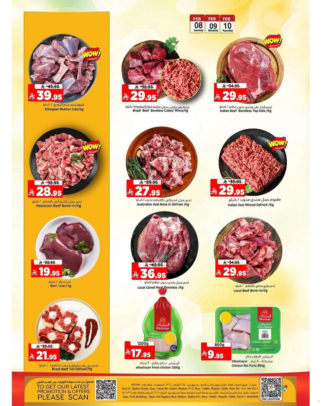 كما تشمل العروض اللحوم والدواجن الطازجة مع خصومات مميزة. لا تفوتوا العروض على منتجات الألبان والمشروبات اليومية الشهيرة.