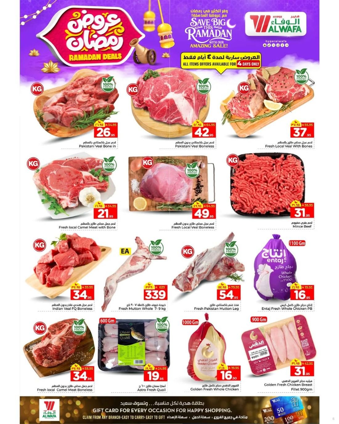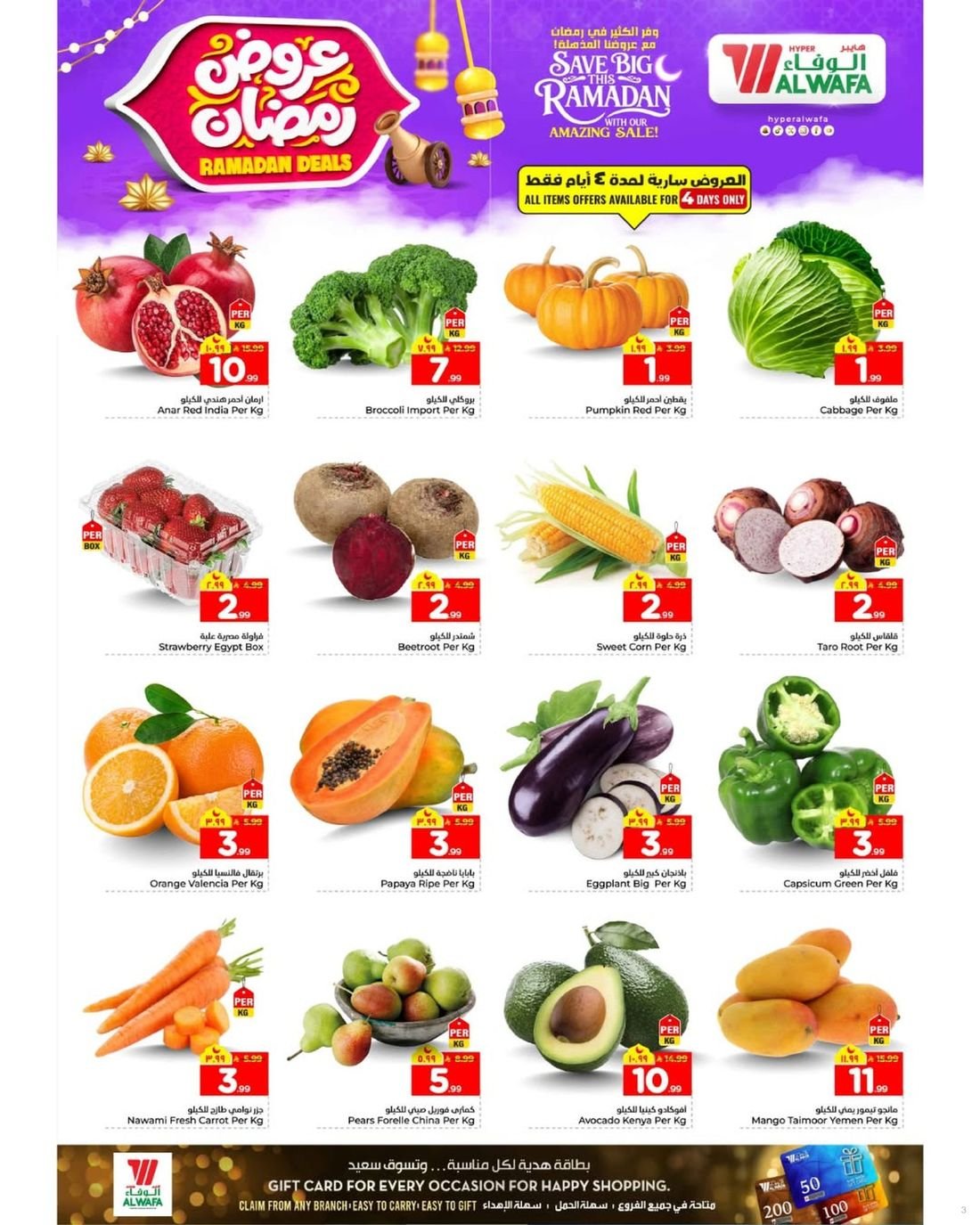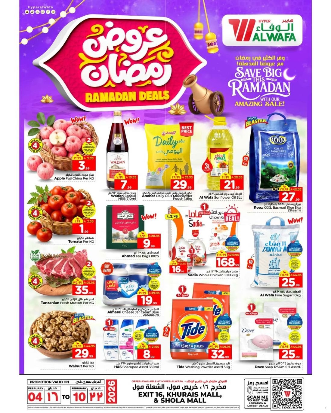 العرض متوفر في جميع فروع الوفاء هايبر ماركت في الرياض : مخرج 16 و خريص مول والشعلة مول