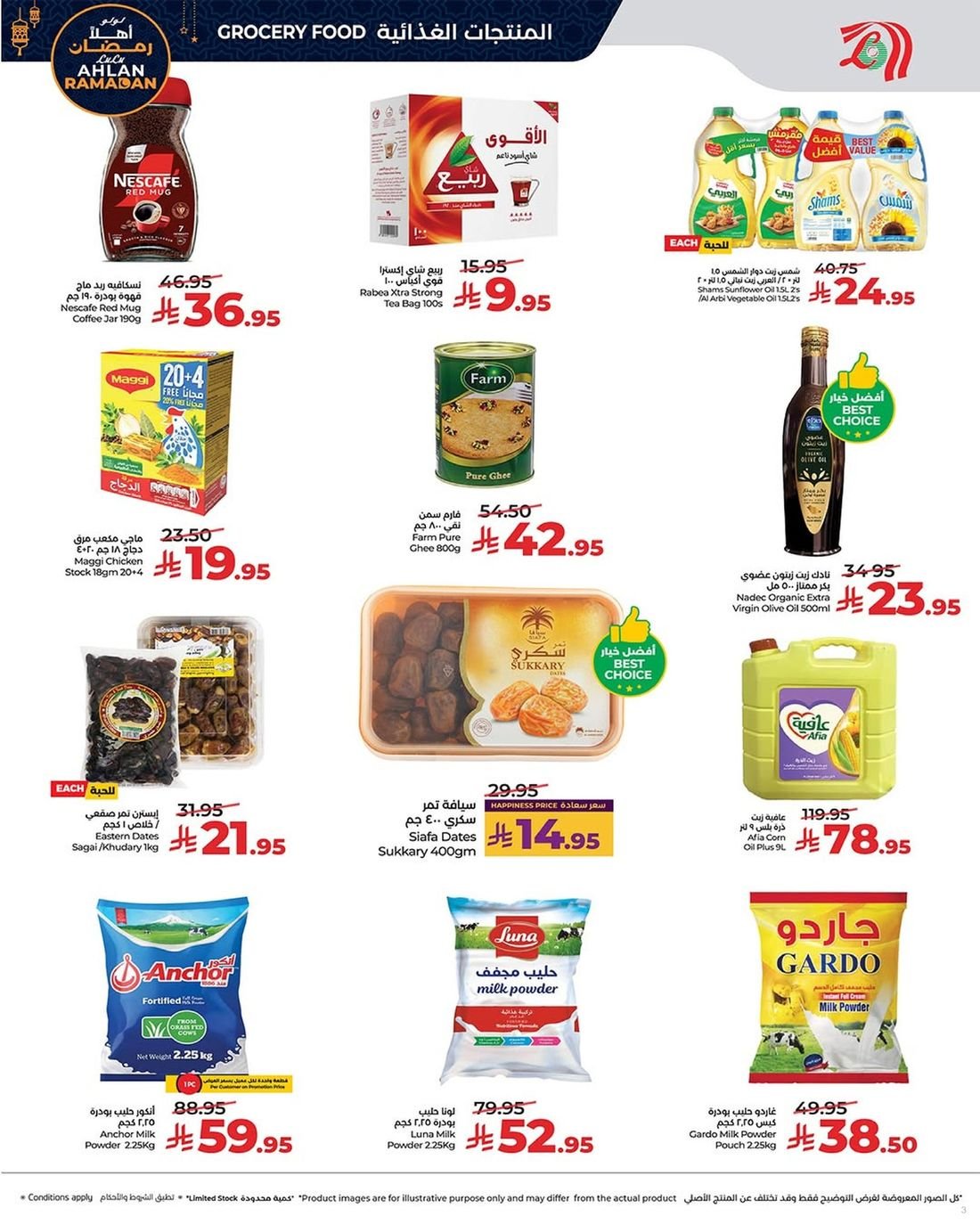 لولو هايبر ماركت تقدم عروض جديدة على تشكيلة واسعة من الغذائيات والطازج ولوازم المنزل المتنوعة باسعار مخفضة ، تشمل العروض المواد الغذائية من خضروات وفواكه ولحوم واسماك طازجة اضافة الى حاجيات المنزل من منظفات وشامبو ومسحوق الغسيل والبامبرز وغيرها.