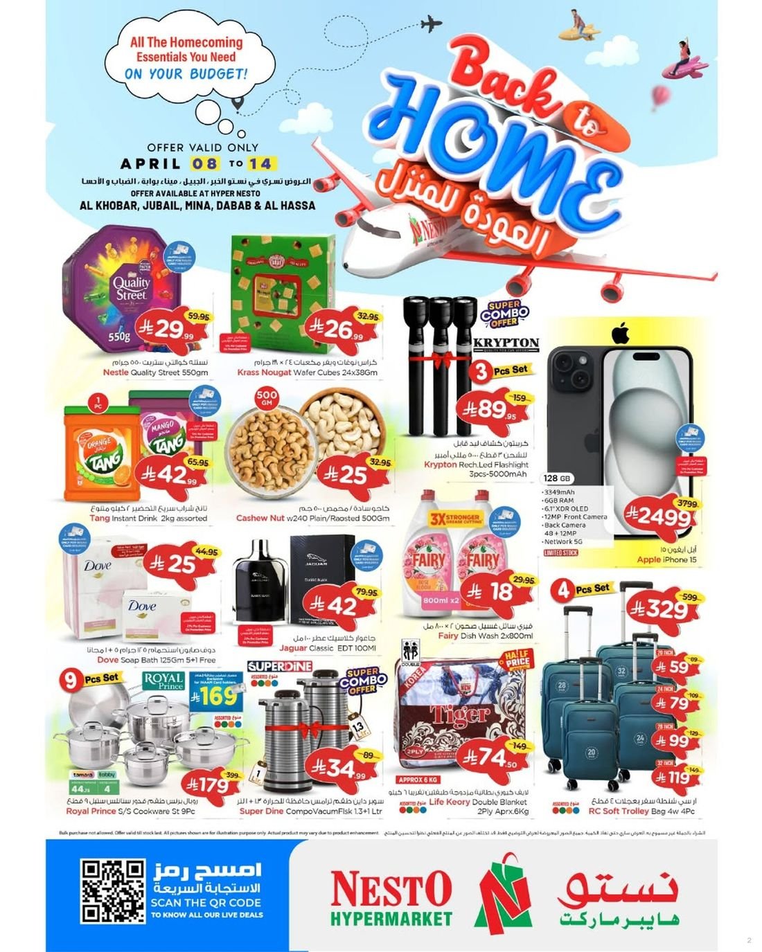 نستو الخبر الجبيل الدمام الخبر يقدم عروض وتخفيضات على مجموعة متنوعة من المنتجات الغذائية و الطازجة بأسعار مميزة وتوفيرات كبيرة اضافة الى عروض لوازم المطبخ والعاب الاطفال والاحذية وشنط السفر والجوالات والالكترونيات المختارة.
